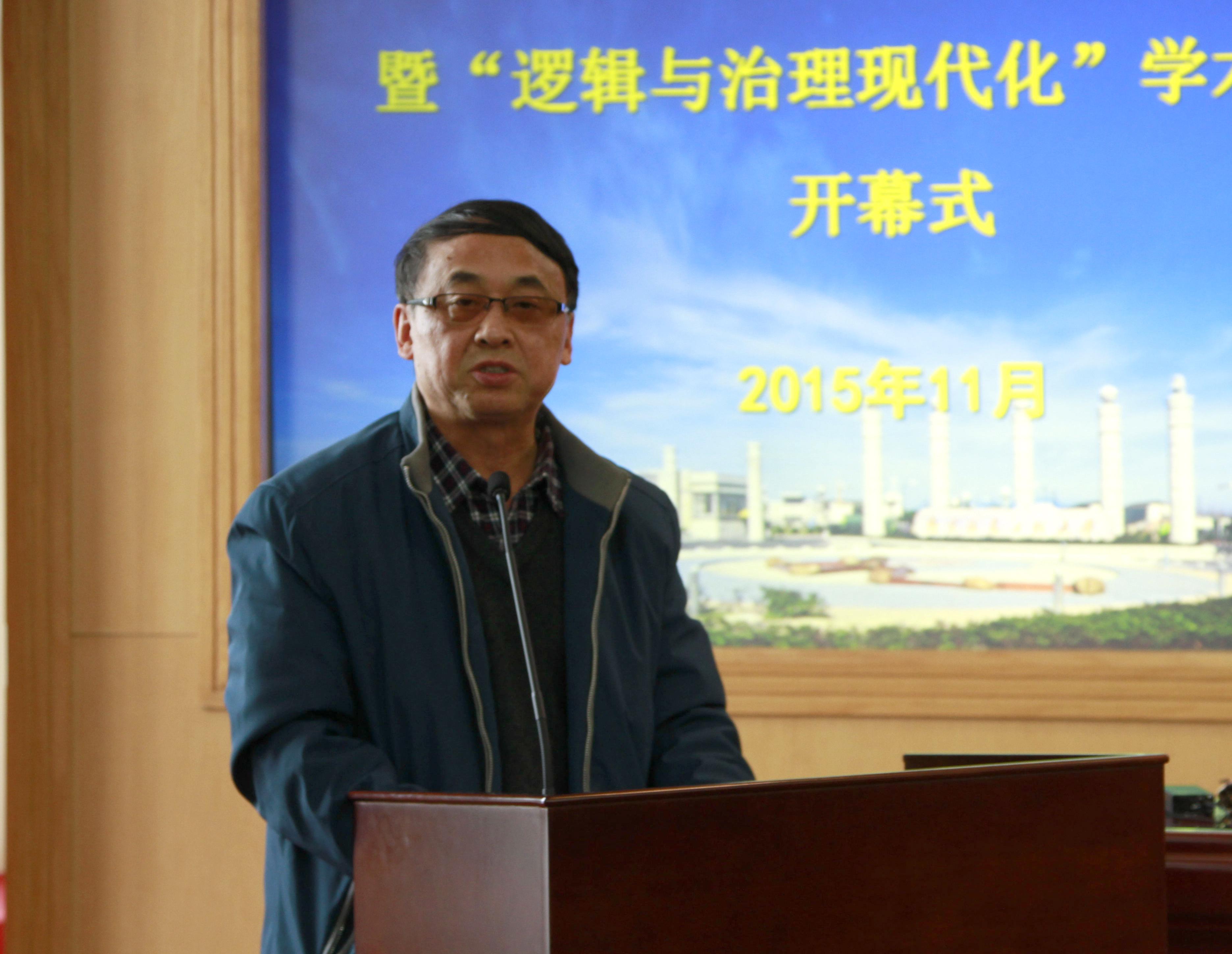 我校副校长闵锦忠在开幕式上致辞,他代表全校师生员工对来校参加会议的各位领导、专家学者表示热烈欢迎。他指出,此次会议以“逻辑与治理现代化”为主题,揭示了逻辑在当前国家治理能力和国家治理体系现代化过程中的重要职责与使命,表现了中国逻辑人在当前全面深化改革、推进“四个全面”建设及“五大发展 ”的重要历史关头,响应时代召唤、履行社会责任的可贵精神。这份勇于担当的精神和务实探究的态度必将推动逻辑科学本身的发展,也必将推动国家与社会的发展与进步。
