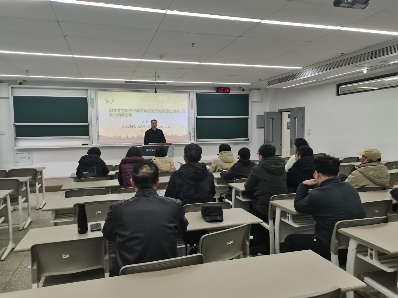 肖主任围绕纲要教学的三个基点和党的创新理论融入教学做了动员讲话。第一,纲要教学的“基本定位”:四个“选择”;第二,纲要教学的“基本立场”:马克思主义范式中的唯物史观;第三,纲要教学的“基本方法”:启发式、参与式、互动式、案例式、研究式、创新式教学;第四,课件、教学进度表、教学大纲和教学档案材料说明;第五,党的创新理论融入纲要教学的着力点:解放和发展生产力角度。